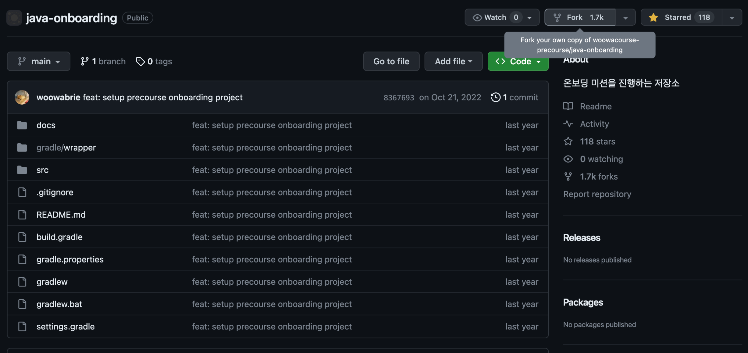 웹 백엔드에 지원할 것이므로 언어는 자바를 사용할 것이다. 1주차는 온보딩으로 총 7개의 문제를 해결하여 제출하는 방식이다. 제출 방식은 처음 접해보는 방식인데 우테코 깃허브에 제출하고. 지원 링크에서 한 번 더 제출해야하는 것 같다. 보다 자세한 사항은 우테코 깃허브에 올라와있다.