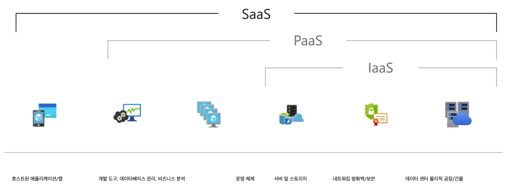 | SaaS | - 간편하게 설정하고 사용 시작 - 제공 업체가 하드웨어부터 소프트웨어까지 모든 것을 유지 및 관리 - 모든 기기에서 모든 인터넷 연결을 통해 소프트웨어에 액세스 가능 |