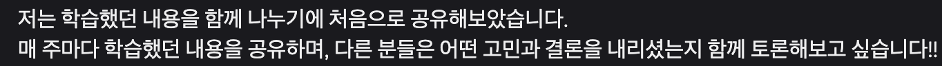 매 주 최소 1가지 이상 학습하고, 블로깅하여 디스코드에 공유하기
