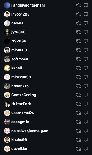 1주차 미션이 종료되고 곧바로 커뮤니티에 PR 리뷰 요청 게시글을 기재했다. 스터디분들과도 리뷰를 진행했다. 생각한 것보다 이 과정이 재미있어 총 20분에게 코드 리뷰를 남겼고, 17명의 리뷰어와 128개의 코멘트를 주고받았다.리뷰를 남길 때 한 분당 약 20~30분의 시간이 소요되지만, 코드를 제대로 읽지 않고 리뷰를 남기면 깊게 고민할 수 없어 최대한 시간을 들이려고 한다.